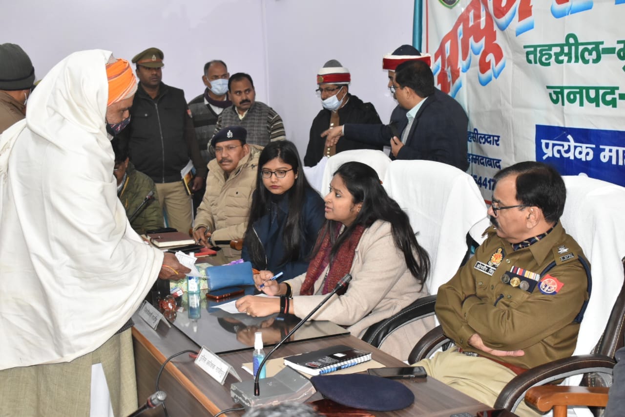 गाजीपुर । जन समस्याओ के त्वरित निस्तारण हेतु सम्पूर्ण समाधान दिवस तहसील मुहम्मदाबाद में जिलाधिकारी आर्यका अखौरी की अध्यक्षता एवं पुलिस अधीक्षक ओमवीर सिंह की उपस्थिति में सम्पन्न हुआ। जिसमे 139 शिकायत/प्रार्थना प्राप्त हुए और मौके पर 09 का निस्तारण किया गया। जनसमस्याओं के त्वरित निस्तारण हेतु सातों तहसीलो की सूचना के अनुसार सम्पूर्ण समाधान दिवस में कुल 499 शिकायत/प्रार्थना प्राप्त हुए जिसमें मौके पर 42 शिकायत/प्रार्थना पत्रो का निस्तारण किया गया।इसी क्रम में तहसील जखनियां में उपजिलाधिकारी की अध्यक्षता में 72 शिकायत/प्रार्थना प्राप्त हुए जिसमें 05 का मौके पर निस्तारण किया। तहसील जमानियॉ में उपजिलाधिकारी की अध्यक्षता में 38 शिकायत/प्रार्थना प्राप्त हुए जिसमें से 02 का मौके पर निस्तारण किया गया। सदर तहसील में उप जिलाधिकारी की अध्यक्षता में 50 शिकायत/प्रार्थना प्राप्त हुए जिसमें मौके 10 का निस्तारण किया गया। तहसील कासिमाबाद में उप जिलाधिकारी की अध्यक्षता में 29 शिकायत/प्रार्थना प्राप्त हुए जिसमें से 06 का मौके पर निस्तारण किया गया। तहसील सेवराई में उपजिलाधिकारी की अध्यक्षता में 65 शिकायत/प्रार्थना प्राप्त हुए जिसमें से मौके पर 08 का निस्तारण किया गया एवं तहसील सैदपुर में उपजिलाधिकारी की अध्यक्षता में 106 शिकायत/प्रार्थना प्राप्त 02 का मौके पर निस्तारण किया गया।