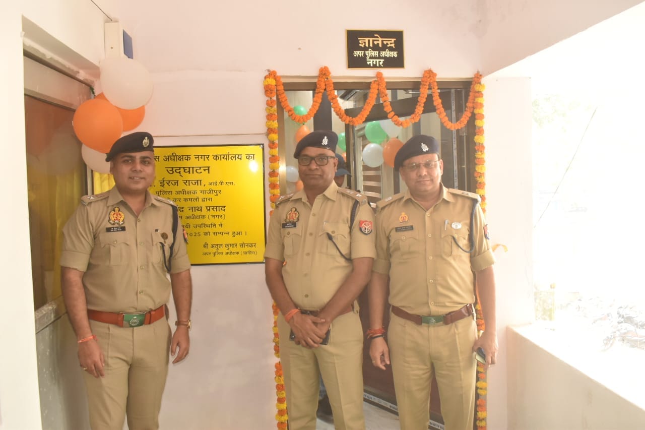 गाजीपुर। पुलिस अधीक्षक डा0 ईरज राजा गाजीपुर ने बुधवार को अपर पुलिस अधीक्षक नगर कार्यालय का भव्य उद्घाटन किया। आधुनिक स्वरूप में नवीनीकृत इस कार्यालय का कायाकल्प कर इसे और अधिक उपयोगी एवं सुव्यवस्थित बनाया गया है।उद्घाटन के दौरान पुलिस अधीक्षक ने कार्यालय की भव्यता और व्यवस्थापन की सराहना करते हुए संबंधित अधिकारियों व कर्मचारियों को बधाई दी।इस अवसर पर अपर पुलिस अधीक्षक नगर एवं ग्रामीण, प्रतिसार निरीक्षक सहित अन्य अधिकारी एवं कर्मचारी उपस्थित रहे।