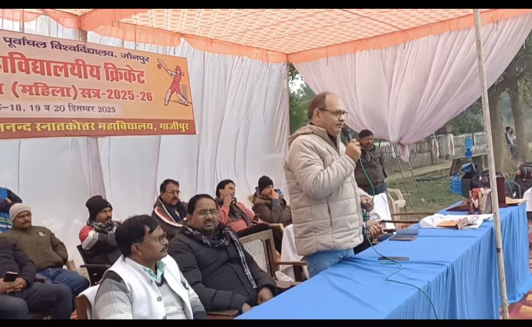 गाजीपुर। वीर बहादुर सिंह पूर्वांचल विश्वविद्यालय, जौनपुर की अंतर महाविद्यालयीय महिला क्रिकेट (महिला) प्रतियोगिता सत्र 2025-26 के द्वि- दिवसीय आयोजन का समापन आज शुक्रवार को संपन्न हुआ। प्रतियोगिता में सूर्यबली महाविद्यालय, जौनपुर की टीम प्रथम स्थान पर रही जबकि पांचू राम महाविद्यालय की टीम उपजेता रही. मेजबान स्वामी सहजानन्द पीजी कालेज, गाजीपुर की टीम को प्रतियोगिता में तीसरा स्थान मिला. प्रतियोगिता में कुल पांच टीमों ने प्रतिभाग किया।प्रतियोगिता का पहला सेमी फाइनल मैच स्वामी सहजानन्द पीजी कालेज, गाजीपुर तथा सूर्यबली महाविद्यालय, जौनपुर के बीच हुआ. सूर्यबली महाविद्यालय की टीम ने पहले बल्लेबाजी करते हुए 125 रन का स्कोर बनाया जिसके जवाब में सहजानन्द की टीम 118 रन बना कर आल-आउट हो गई।दूसरा सेमी फाइनल मैच मडियाहूं पीजी कॉलेज, जौनपुर तथा पांचू राम महाविद्यालय, जौनपुर के बीच खेला गया जिसमें मडियाहूं पी जी कालेज की टीम मात्र 73 रन बना कर आल-आउट हो गई। जवाब में पांचू राम महाविद्यालय, जौनपुर ने 2 विकेट खो कर लक्ष्य की पूर्ति कर 8 विकेट से मैच जीत लिया।ज्ञातव्य है कि इस प्रतियोगिता के माध्यम से ही वीर बहादुर सिंह पूर्वांचल विश्वविद्यालय की 14 सदस्यीय महिला क्रिकेट टीम का चयन होना है. मुख्य चयनकर्ता और पर्यवेक्षक के रूप में सुश्री अलका सिंह पूरे प्रतियोगिता के दौरान मौजूद रहीं। प्रतियोगिता के समापन समारोह में प्रतिभागी टीमों की खिलाड़ियों को संबोधित करते हुए महाविद्यालय के प्राचार्य प्रो. (डा.) वी के राय ने कहा कि खेलकूद शैक्षिक पाठयक्रमों के अनिवार्य अंग के रूप मे लिए जाने चाहिए. खेल प्रतियोगिताओं से दर असल जीवन को सकारत्मक रूप से समग्रता में जीने की प्रेरणा मिलती है. प्रो. राय ने प्रतियोगिता के सफल आयोजन के लिए खेल-कूद विभाग के अध्यक्ष डॉ. रामधारी राम तथा खेल प्रशिक्षक श्री संजय राय सहित पूरे आयोजन समिति को धन्यवाद दिया।इस अवसर पर महाविद्यालय के वरिष्ठ शिक्षक कर्मचारी डा. विलोक सिंह , डॉ रामधारी राम, डॉ. कृष्णानन्द चतुर्वेदी, डॉ. राकेश पाण्डेय, डॉ. अवधेश पाण्डेय, डॉ. सतीश राय, डॉ. देव प्रकाश राय, डॉ. नित्यानंद राय, शशांक राय, प्रवीण राय, समीर राय, सत्येंद्र राय, डॉ. कंचन सिंह, डॉ. विभा राय, शरद राय, आदि के साथ सैकड़ों की संख्या मे छात्र- छात्राएं उपस्थित थे।
