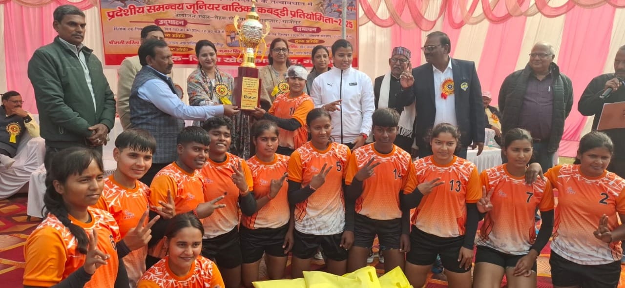 गाजीपुर। बड़े हर्षाेउल्लास के साथ अवगत किया जाता है कि खेल निदेशालय उ0प्र0 लखनऊ एवं उ0प्र0 कबड्डी संघ के समन्वय से जनपद गाजीपुर में प्रदेश स्तरीय समन्वय जूनियर बालिका कबड्डी प्रतियोगिता दिनांक 06 से 08 दिसम्बर 2025 तक जिला खेल कार्यालय नेहरू स्पोर्ट्स स्टेडियम गोराबाजार गाजीपुर के प्रांगण में किया जा रहा है, जिसमें वाराणसी मण्डल एवं आगरा छात्रावास के मध्य खेला गया, जिसमें वाराणसी मण्डल 43-24 अंको से विजयी रही इस प्रतियोगिता का समापन एवं पुरस्कार वितरण मुख्य अतिथि सपना सिंह, जिला पंचायत अध्यक्ष गाजीपुर के कर कमलो द्वारा दिनांक 08 दिसम्बर 2025 को किया गया मुख्य अतिथि का सम्मान विमला सिंह क्षेत्रीय क्रीड़ाधिकारी वाराणसी द्वारा बुके व मेमोन्टो देकर स्वागत किया एवं विशिष्ट अतिथि श्री राजेश कुमार सिंह, महासचिव उ0प्र0 कबड्डी संघ को क्रीड़ा अधिकारी गाजीपुर द्वारा बुके व मेमोन्टो देकर स्वागत किया गया, मुख्य अतिथि द्वारा महिला खिलाड़ियो को नारी शक्तीकरण हेतु प्रोत्साहित किया। इस अवसर पर दिलीप कुमार जिला युवा कल्याण अधिकारी गाजीपुऱ संयुक्त सचिव उ0प्र0 कबड्डी संघ अकरम अहमद, नरेन्द्रनाथ सिंह पूर्व जिला पंचायत अध्यक्ष, हनुमान सिंह कबड्डी संघ के पूर्व अध्यक्ष स्टेडियम के समस्त प्रशिक्षक गाजीपुर उपस्थित रहें। प्रतियोगिता का पहला क्वाटर फाईनल वाराणसी मण्डल बनाम मेरठ मण्डल के मध्य खेला गया जिसमें वाराणसी मण्डल ने 41-22 अंको से विजयी रही। वही दूसरा क्वाटर फाईनल आजमगढ मण्डल बनाम लखनऊ मण्डल के मध्य खेला गया जिसमें आजमगढ मण्डल 39-08 अंको से विजयी रही वही तीसरा क्वाटर फाईनल सहारनपुर मण्डल बनाम आगरा छात्रावास के मध्य खेला गया जिसमें आगरा छात्रावास 36-34 अंको से विजयी रही वही चौथा क्वाटर फाईनल अयोध्या मण्डल बनाम मीरजापुर मण्डल के मध्य खेला गया जिसमें मीरजापुर मण्डल 32-25 अंको से विजयी रही। प्रतियोगिता का पहला सेमीफाईनल वाराणसी मण्डल बनाम आजमगढ मण्डल के मध्य खेला गया जिसमें वाराणसी मण्डल 38-11 अंको से विजयी रही वही दूसरा सेमीफाईनल आगरा छात्रावास बनाम मीरजापुर मण्डल के मध्य खेला गया जिसमें आगरा छात्रावास 33-12 अंको से विजयी रही।