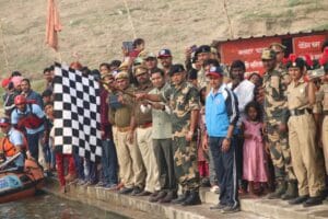 बीएसएफ की वीर नारियों की रिवर राफ्टिंग यात्रा पहुंची  कलेक्टर घाट