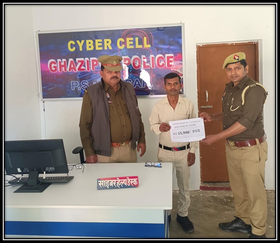 गाजीपुर। जनपद में साइबर अपराधों की रोकथाम के लिए चलाए जा रहे अभियान के तहत थाना नगसर हाल्ट की साइबर हेल्प डेस्क टीम ने सराहनीय कार्य करते हुए एक पीड़ित की ठगी गई धनराशि वापस कराई है।प्राप्त जानकारी के अनुसार, ग्राम सरहुला निवासी अरविन्द कुमार पुत्र रविन्द्र नाथ के पास एक फर्जी फोन कॉल आया। कॉल करने वाले ने आंगनवाड़ी योजना के तहत उनकी बहन की डिलीवरी से संबंधित आर्थिक सहायता दिलाने के नाम पर एक लिंक भेजा। लिंक पर क्लिक करते ही तीन अलग-अलग ट्रांजेक्शन के माध्यम से कुल 16,300 रुपये की धनराशि साइबर ठगों द्वारा निकाल ली गई।घटना की सूचना मिलते ही थाना नगसर हाल्ट की साइबर हेल्प डेस्क टीम ने त्वरित कार्रवाई करते हुए साइबर हेल्पलाइन नंबर 1930 तथा एनसीआरपी पोर्टल पर ऑनलाइन शिकायत दर्ज कराई। शिकायत संख्या 33101260005105 के तहत न्यायालयीय आदेश की प्रक्रिया पूर्ण कराते हुए 15,948 रुपये की ठगी गई राशि पीड़ित को वापस कराई गई।पुलिस अधीक्षक गाजीपुर के निर्देशन में साइबर अपराध के विरुद्ध चलाए जा रहे अभियान के तहत यह कार्रवाई आमजन के लिए राहतकारी साबित हुई है। पुलिस ने लोगों से अपील की है कि किसी भी अनजान लिंक पर क्लिक न करें तथा साइबर ठगी होने पर तत्काल 1930 पर सूचना दें।