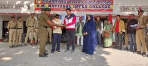भांवरकोल (गाजीपुर )शासन के निर्देश पर 92 यूपी बटालियन एनसीसी गाजीपुर के तत्वावधान में आजादी का अमृत महोत्सव पर ‘अमर शहीदों को शत शत नमन’ कार्यक्रम के तहत गुरुवार को एसएम नेशनल इंटर कॉलेज मच्छटी में देश की सुरक्षा में अपने प्राणों की आहुति देने वाले कुल 9 अमर शहीदों के स्वजन अथवा अन्य प्रतिनिधियों को स्मृति चिन्ह देकर सम्मानित किया गया इस अवसर पर विद्यालय के एनसीसी प्रभारी लेफ्टिनेंट शकील अहमद ने अमर शहीदों को श्रद्धांजलि अर्पित करते हुए कहा कि अमर शहीदों के प्रति सम्मान का भाव हम सभी भारत वासियों के हृदय में विद्यमान है । चाहे वह स्वतंत्रता प्राप्ति के लिए अपने प्राणों की आहुति दिए हो अथवा स्वतंत्रता प्राप्ति के बाद देश की सुरक्षा में अपने प्राणों को न्यौछावर किया हों, हम देशवासियों उन्हें कभी भुला नहीं पायेंगे। इस अवसर पर विद्यालय के प्रभारी प्रधानाचार्य शोएब अहमद खान , निवर्तमान प्रभारी प्रधानाचार्या फरहत मिर्जा , ईसार अहमद खां, सेराज अहमद हुसैन खां सहित अन्य शिक्षक एवं कर्मचारी गण के अलावा मुख्यालय यूनिट से आए हवलदार मुकेश कुमार एवं हवलदार मुकेश चंद्र तथा शहीद श्रीपति राम के भाई अंबिका राजभर ,शहीद केशव सिंह की धर्मपत्नी मंजू देवी, शहीद मुनींद्र प्रसाद राय के भतीजे शिवम राय, शहीद शशांक कुमार सिंह के भाई सुधांशु सिंह सहित अन्य गणमान्य व्यक्ति उपस्थित रहे।