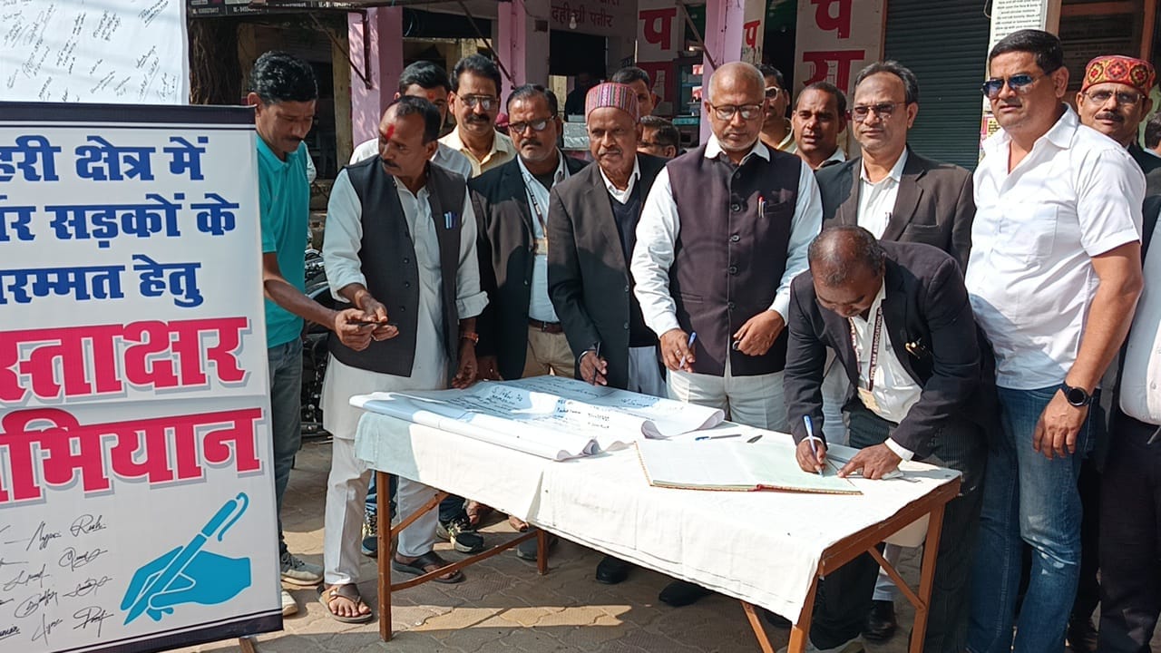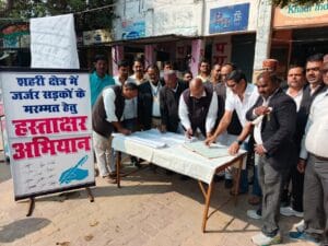 गाजीपुर । वुघवार को नगरीय क्षेत्र को गड्ढा मुक्त करने की मुहिम को लेकर चल रहे हस्ताक्षर अभियान में करीब 1600 लोगों ने हस्ताक्षर करके अपना समर्थन दिया। अभियान के दूसरे दिन कचहरी क्षेत्र में अधिवक्ता संघ ने हस्ताक्षर अभियान में भाग लिया तथा अधिवक्ता संघ का पूर्ण समर्थन इस आंदोलन को दिया गया।वरिष्ठ अधिवक्ता सुरेश चंद्र श्रीवास्तव ने कहा कि गाजीपुर नगर की सड़कों की ऐसी बदहाल स्थिति पहले कभी नहीं थी। सीवर का काम खत्म हुए एक वर्ष से ऊपर हो गया, फिर भी एक भी रोड का पूरी तरीके से निर्माण नहीं हो पाया है। अपने मुकदमे के सिलसिले में ग्रामीण क्षेत्रों से आए हुए वादी व प्रतिवादी शहर क्षेत्र में घुसते ही शासन व प्रशासन को कोसने लगते हैं। इससे बड़ा दुर्भाग्य गाजीपुर शहर का नहीं हो सकता कि ग्रामीण क्षेत्र से आए हुए लोग जिला मुख्यालय पर आकर यह कहने लगे कि शहर से अच्छी तो गांव की सड़कें हैं।हस्ताक्षर अभियान के आयोजक विवेक कुमार सिंह ‘शम्मी’ ने कहा कि 10000 हस्ताक्षर होने तक यह अभियान चलता रहेगा। नगर के विभिन्न क्षेत्रों में जाकर हस्ताक्षर कराते रहेंगे। साथ ही आम लोगों को अपने अधिकार के प्रति जागरूक भी करेंगे।मौके पर अधिवक्ता संघ से एडवोकेट सुरेश चंद श्रीवास्तव, एडवोकेट बृजेश राय, एडवोकेट रणजीत सिंह, एडवोकेट राजेश राम, एडवोकेट वीरेश सिंह, आदि दर्जनों वकीलों के साथ ही चंद्रिका यादव आदि स्थानीय नागरिकों ने हस्ताक्षर अभियान का समर्थन किया।