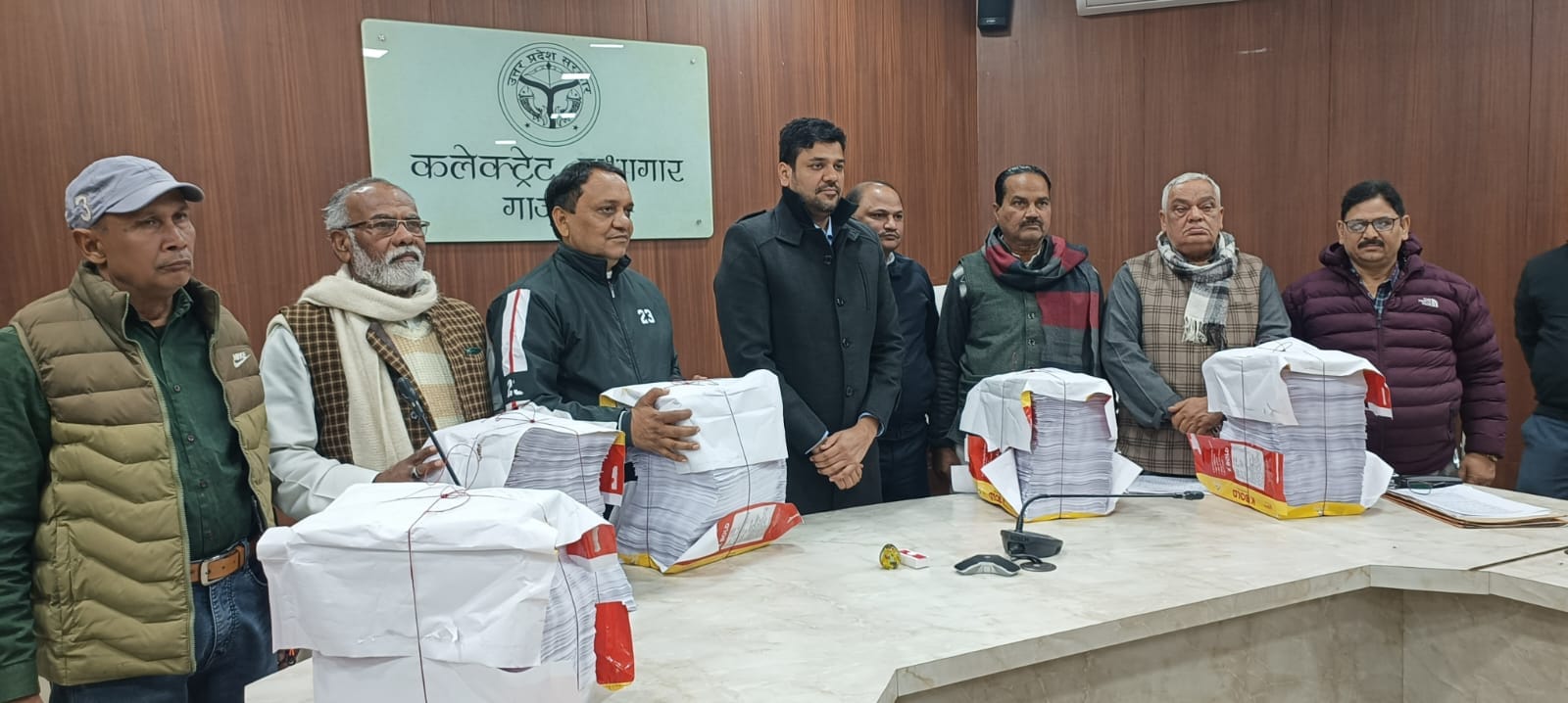 गाजीपुर।  दिनांक 06.01.2026 को कलेक्ट्रेट सभागार मे जिला निर्वाचन अधिकारी/जिलाधिकारी अविनाश कुमार की अध्यक्षता मे निर्वाचक नामावलियो के विशेष प्रगाढ पुनरीक्षण कार्य अन्तर्गत आलेख्य प्रकाशन के अवसर पर समस्त मान्यता प्राप्त दलो के साथ बैठक आहूत की गयी। जिसमे विभिन्न राजनैतिक दलो के पदाधिकारियों ने प्रतिभाग किया जिसमे सहायक जिला निर्वाचन अधिकारी देवी प्रसाद सिंह, रविकान्त राय  काग्रेस, राजन प्रजापति भाजपा, सुभाष राम सिपाही बसपा, राजेश यादव सपा, जावेद अहमद आप पार्टी मौजूद रहे। इस दौरान विधान सभा निर्वाचन क्षेत्रों की निर्वाचक नामावलियों का आलेख्य प्रकाशन कर मतदाता सूची उपस्थित राजनैतिक दलो के पदाधिकारियों को हस्तगत कराया गया।