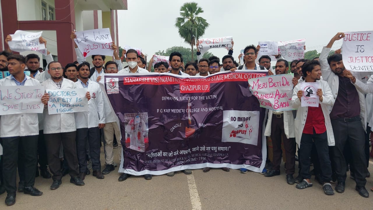 मेडिकल कालेज के स्टूडेंट्स,डाक्टरों ने किया प्रदर्शन
