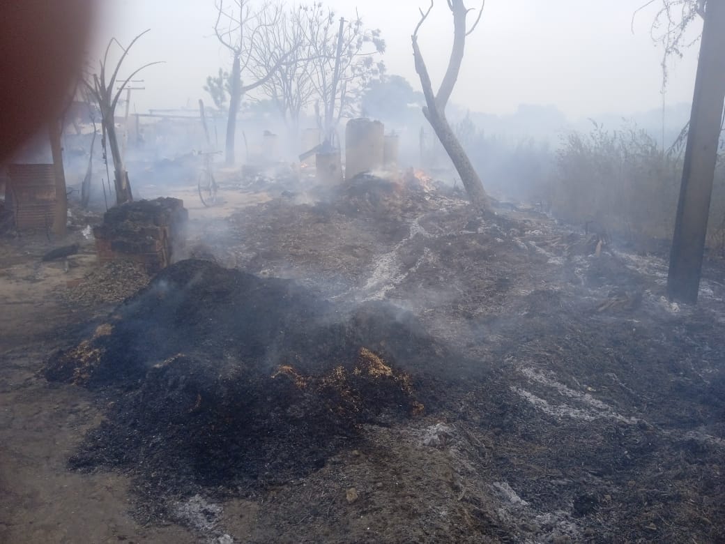 मुबारकपुर बस्ती में अगलगी की घटना में दो दर्जन से अधिक रिहायशी झोपड़ियां जलकर खाक