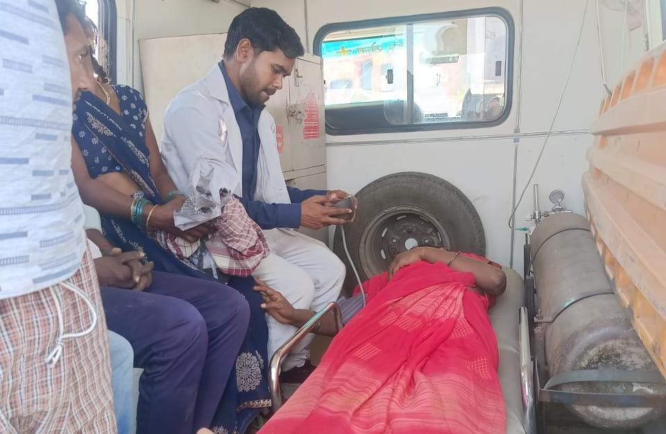 बाइक से धक्का लगने पर सड़क किनारे कराह रही थी महिला, 108 एंबुलेंस ने पहुंचाया स्वास्थ्य केंद्र