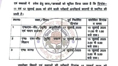 गाजीपुर । एम०एस-सी कृषि और एम० कॉम० की प्रवेश परीक्षा अब 15 जुलाई को