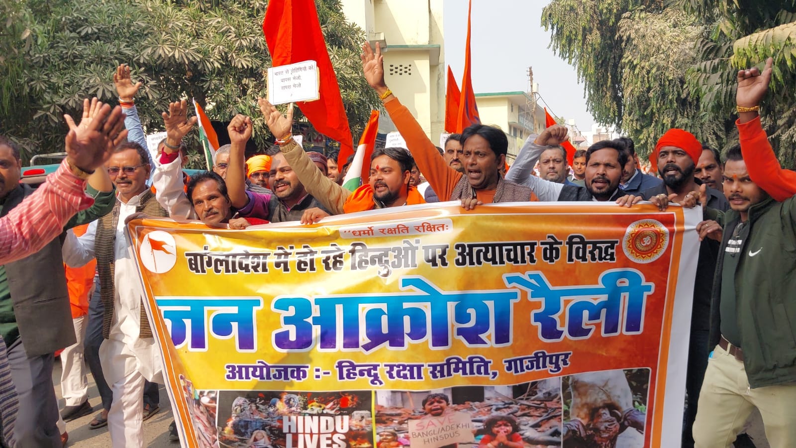 गाजीपुर : बांग्लादेश में हिंदुओं पर अत्याचार के विरोध में प्रदर्शन